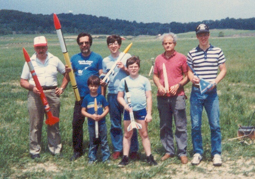 Our first launch was held off Lower Butler Road, Harmony, Pa. This launch field later became known as the Z field for Zelienople. Z field was an early high power launch field for Tripoli as it transformed to national status under the direction of our own Tom Blazanin. Nine members attended the first launch. They were Mort Binstock, Tom and Jed Blazanin, Mike Kalmar, Joseph Mary, Erik Schall, Rod Schafer, my wife Peg and myself. Although Peg had not yet joined NAR, she had assisted in the formation of the club and was considered a member. Joseph and Erik never attended a second launch. Mike, Tom and Jed were faithful club members until they moved away. Rod couldn't drive yet so his whole family came out. Sorry Rod, but my most vivid memory of our first launch was my calling you Rodney to the delight of your giggling sisters. I was afraid I had embarrassed you. Rod was our first Range Safety Officer. Joseph Mary was "elected" Vice President. I seem to remember no one stepped forward and I pressured him to take it. Maybe that's why he never came back!