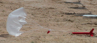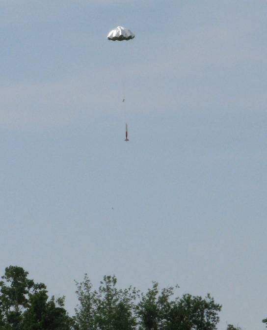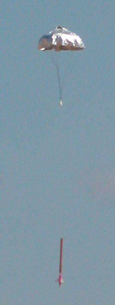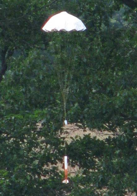 For NARAM-51, the Parachute Duration event is for 1/2A engine class, and is flown Multi-Round style. Parachute Duration combines the challenge of building a light rocket that can carry a large enough parachute to descend slowly, yet being able to deploy reliably, to achieve a good duratin score. In Parachute Duration, the model has to remain in one piece throughout the flight and cannot be staged. Multi-Round - This form of duration scoring involves "Max" times and three flights. For 12/A PD, the maximum time is 120 seconds. As an example, if the model stays in the air for 152 seconds, it's official time is 120 seconds ("Max"). It is a challenge to get a 1/2A PD model to stay in the air for at least 120 seconds, for three flights in a row. Usually thermal help is needed. Models in multi-round scored events DO NOT have to be returned, but only two models are allowed. This means that you need to return one model to make your third flight. And if you make it to a flyoff, you'll need a returned model for the fourth (flyoff) flight round. For the full rules for this event, please see the Parachute Duration Rules on the NAR web page, as well as the multi-round rules (15.12). Scoring - For Multi-Round Parachute Duration, the scoring is the sum of all of the qualified flights. If there is a tie for first place at the end of round three (normally three maxes), there will be a fly-off round between those contestants who are tied, with the max time increased by at least 60 seconds. Design considerations - There are trade-offs between the model's performance and the parachute's size. Increasing the size of the parachute means the chute will need more room inside your rocket. Increasing the size of the rocket to hold a larger chute will make the rocket heavier, so it will not boost as high. One of the biggest problems in flying PD is getting the chute to deploy. This is not just an issue of packing technique. It concerns how tightly packed the chute is inside of the tube. This is why some fliers will use a longer length tube, and/or a larger diameter tube, so they can have more room to pack a chute in. This also depends on the material used for the parachute, since thinner material packs more easily into a given tube length and diameter than a thicker material The simplest and perhaps best models for a new flier to make are 13mm type models, using a body tube of about 12" or so length. Then use whatever appropriate diameter of chute that you can pack into it that will DEPLOY reliably. Estes BT-5 kits that may be suitable are the Gnome and Puma, if you have them. But these are not as good as ones you can make, or as good as contest-type kits. A list of plans and kits is included further down on this page.