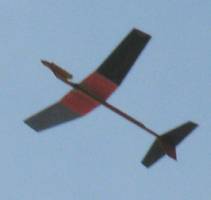 For Auto-Elevator prep, see the Xebec-B plan. Only a light pull is needed to make the elevator pop up: instead of a rubber band, elastic thread tied into a loop of the proper length should be used. A too-strong pull might make it difficult to force the elevator flat for boost. The burn thread needs to be thin so it will burn easily. The button and carpet type of thread that Estes uses for shroud lines is too thick for anything short of a D12 ejection charge to burn. So use a finer thread. I prefer to use white elastic thread, which will snap free when it burns. The rubber bands need to be selected carefully. Do not grab just any rubber band and try to force it to stretch really far, as it might cause the model to actually break itself when the band force causes the model's parts to slam into each other too hard at ejection. Look for rubber bands with 1/16" cross sections, in various lengths, at Office Supply type stores. Look for the classic pale brown latex bands, colored bands tend to not stretch as much. While the band should not be stretched so much that it causes excessive force, it should not be relaxed at the end of travel so that there is slack, as it might not deploy the wings, pod, etc, 100% as it needs to. This is not hard to get right, just it can cause trouble if it's overlooked. Building Gliders - Jeff Vincent's Nocturne Slide-Wing Rocket Glider plan includes a lot of useful instructions on how to build, trim, and fly a Rocket Glider. It also includes some information on how to rig up the thread and rubber band system, useful to know for any slide-wing. The written article is here, and the 11 x 17" plans are here. Ed LaCroix created some fantastic instructions for the Maxima A Boost Glider kit, from the time when Ed owned and ran Apogee. The instructions are so in-depth that they are a must-read for anyone wanting to learn more on how to build, trim, and fly rocket boosted gliders of any kind. Please note that the Maxima is a BOOST Glider, not a Rocket Glider, so that design is not legal for this event. But the general "how to build and fly glider" information in those instructions is very useful. Kevin Wickart wrote a nice short article on how to do quick and easy airfoils, on the WOOSH section's website. Click here to read it. A VERY nice sanding block, useful for gliders, helicopter, and any rocket really, is an all-metal 2-piece clamp-type sanding block made by Red Devil, carried by most Ace Hardware stores (look near where they stock sandpaper). It has a 1/8" foam rubber backing sheet, which ought to be removed since it allows rounding things too easily in 3-D when you usually want to shape in 2-D at a given time (as with a wing). So, remove the rubberized portion. That sanding block holds a 4.5 x 5.5" sheet of sandpaper (quarter of a 9 x 11" sheet), with a 3.5 x 4.5" sanding surface area on the block. This works far better in most cases than a narrow sanding block. Of course, the wings (or fins) should be shaped and finished before they are glued to the fuselage or model. When doing very rough shaping for wings, 80 to 120 grit sandpaper is good to grind off a lot of wood in a short time. Don't over-do it though by sanding off too much. Then go to finer grit like 180 to 220 for finer shaping. Beyond that, 280/320 paper, is sort of a cross between final shaping and setting up for a final finish. A final finish for bare balsa is to use 400 grit paper. Get the "black" type wet or dry sandpaper, it sands better and lasts longer than the reddish types. If you use any clear dope, use 320 to 400 grit paper before and after. Glider Finish - Never use paint on a contest type glider. For newer fliers, no finish is usually fine. You don 't want to weigh the model down too much and maybe having warpage problems. If you want to improve the finish, use some thinned clear dope in one or two light coats, sanding before and after with 240 and 400 grit sandpaper. The idea is not to add significant weight or cause the wood parts to warp. Some fliers like to use a Japanese tissue finish, but that is more for experts and to an extent is overkill for B R/G's. Coloring - OK, so bare balsa (even with clear dope) is not easy to see in the air or on the ground. Use a large black magic marker to color the bottom of the wing and tail surfaces black, as that shows up against the sky pretty well. Use a large red or orange magic marker to color the top surfaces. If you can find true fluorescent markers (not to be confused with wimpy fluorescent highlighters), an orange or red/magenta fluorescent color is highly recommended. Glide trimming - It is an understatement to say that it is very important to trim the glider to glide properly. It's not easy to describe just how to do so. One mostly universal tip is to have the tail of the glider and the wing to not be parallel to each other (zero incidence). There ought to be a little bit of "up elevator" angle in the tail, relative to the wing, to make the nose pull up a bit. Some plans/kits may be quite specific, and in those cases go with what they say (for example the Xebec-B auto-elevator design requires absolute zero incidence for a straight boost, then up elevator for glide). Note that free flight model airplane experts sometimes prefer zero incidence, but they are deeply experienced (usually) to have just the right touch and experience to get away with it. The above being said, one of the simple ways to achieve slight up elevator effect (without adding too much) is to build the model zero-zero (wing and stabilizer parallel to each other), then warp the trailing edge of the stabilizer up. Make sure that the fuselage itself is not warped "down" - if it is warped at all, better to be warped "up" relative to the wing and stabilizer. Special trimming notes for Rocket Gliders -