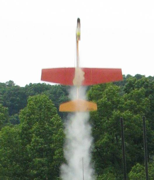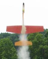For NARAM-51 the Rocket Glide event is for B engine class. Rocket Glide combines the challenge of building and flying a glider which remains in one piece for the whole flight, which can boost relatively well (and hold together) on rocket power, and transition to a long gliding flight. In Rocket Glide, the glider must remain in one piece for the whole flight. Nothing can come off - no pop-pods, no parasites, no ejected engine. It cannot be staged. The glider must be returned for one of the two flights allowed. Flex-wing (Rogallo/hang glider) type gliders are not allowed. For the full rules for this event, please see the Rocket Glide Rules on the NAR web page. Scoring - For Rocket Glide, the scoring is the total of two flights allowed, but at least one of those flights must have the glider returned. Design considerations - Difficulty of making and flying a glider that does not have any parts come off in flight (Often with a design that uses some sort of moving parts like a sliding wing or sliding pod). Trade-offs of high glider performance and visibility with surviving rocket boost, and trying to get at least a reasonable boost altitude. Rocket Glider designs are more specialized than Boost Gliders, so it is not recommended for newer fliers to try to design their own. Best to go with a kit such as those below, or a plan. With experience, you might later develop a knack for designing your own gliders, but it's best to learn from something proven first. A list of plans and kits is included